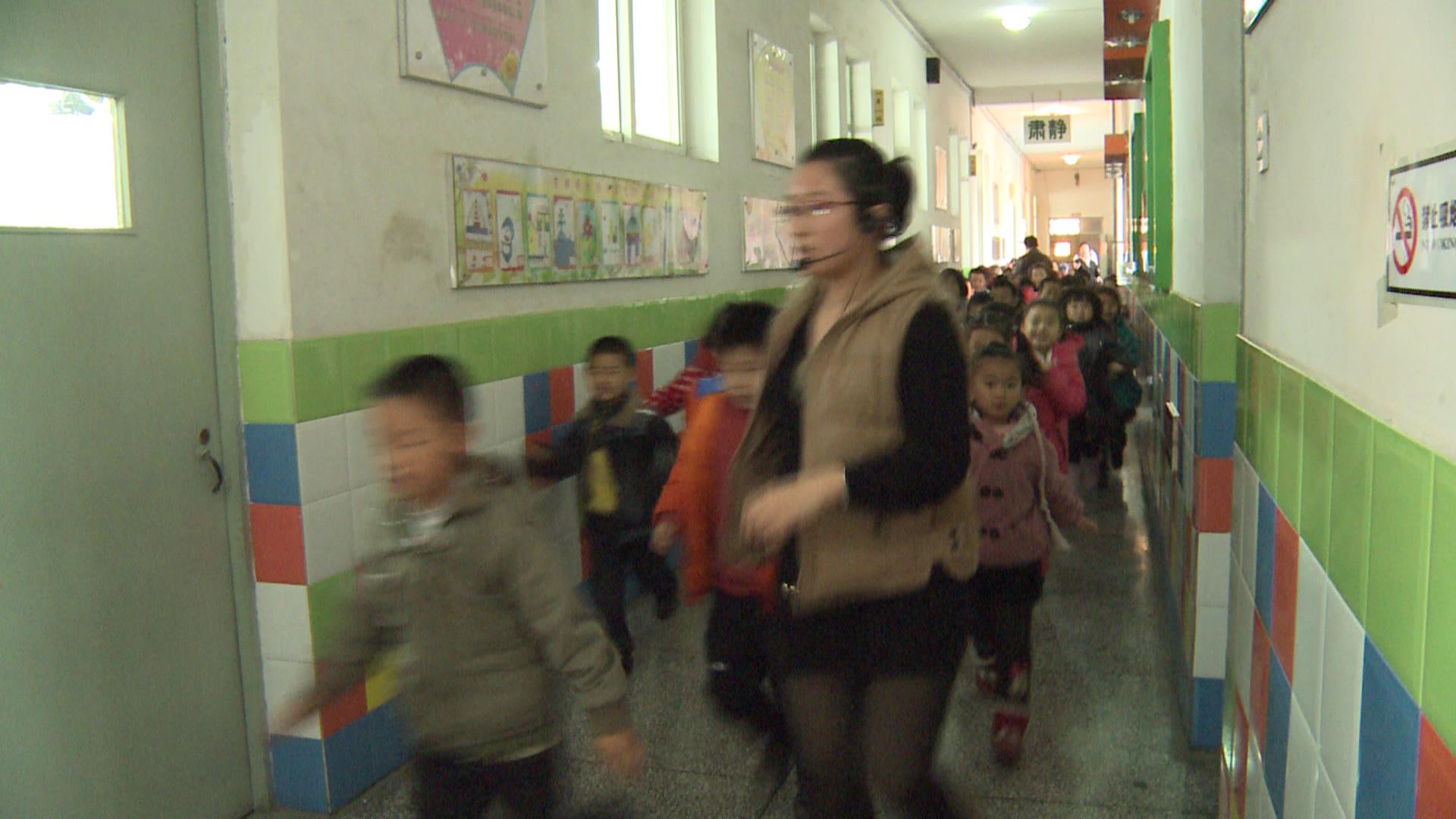 下午4:40演练的警报声响起,各班学生在任课教师的带领下,有秩序地迅速撤离教学楼。在楼道相对窄小的楼梯转弯处,学生有秩序地迅速通过,紧张而不慌乱,人多而不拥挤。全校1400多名师生无一人掉队,全部到达指定安全位置,整个演练共用时3分40秒。