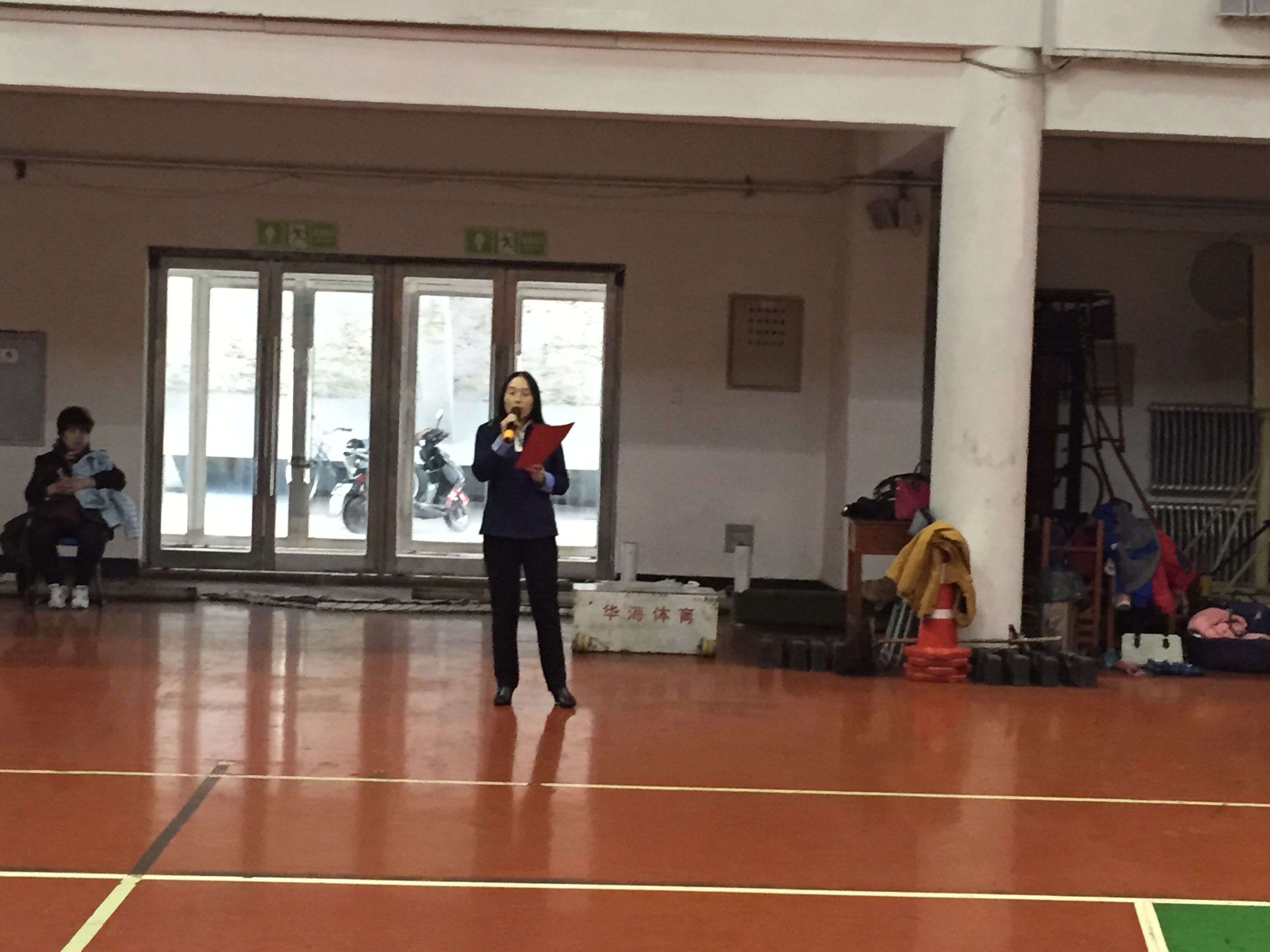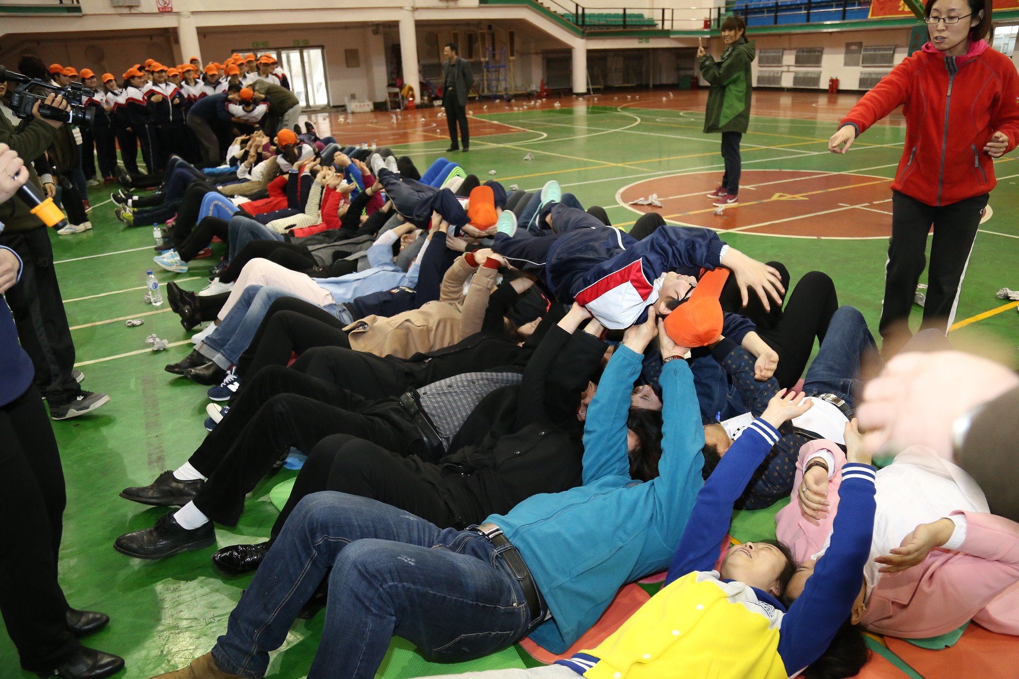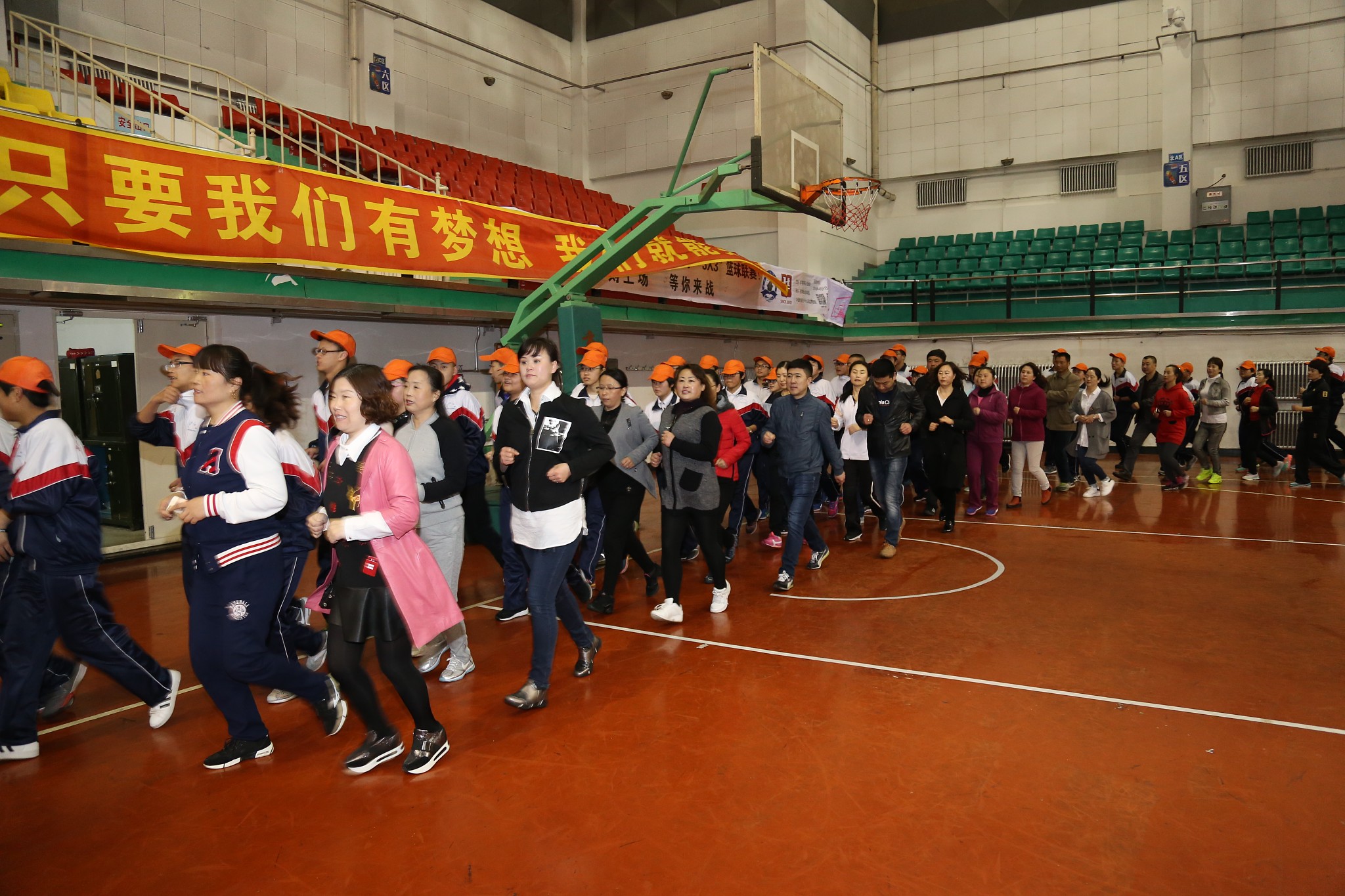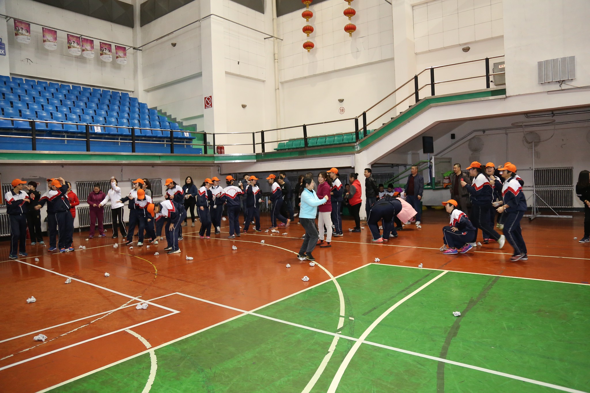 接下来是学生与父母在跑动过程中相互捶背的活动,速度由慢到快再到慢,力度由轻到重再到轻,一个简单的动作,一副单一的画面,却是那么幸福、那么温馨,会场气氛既活泼热烈,又轻快温暖。