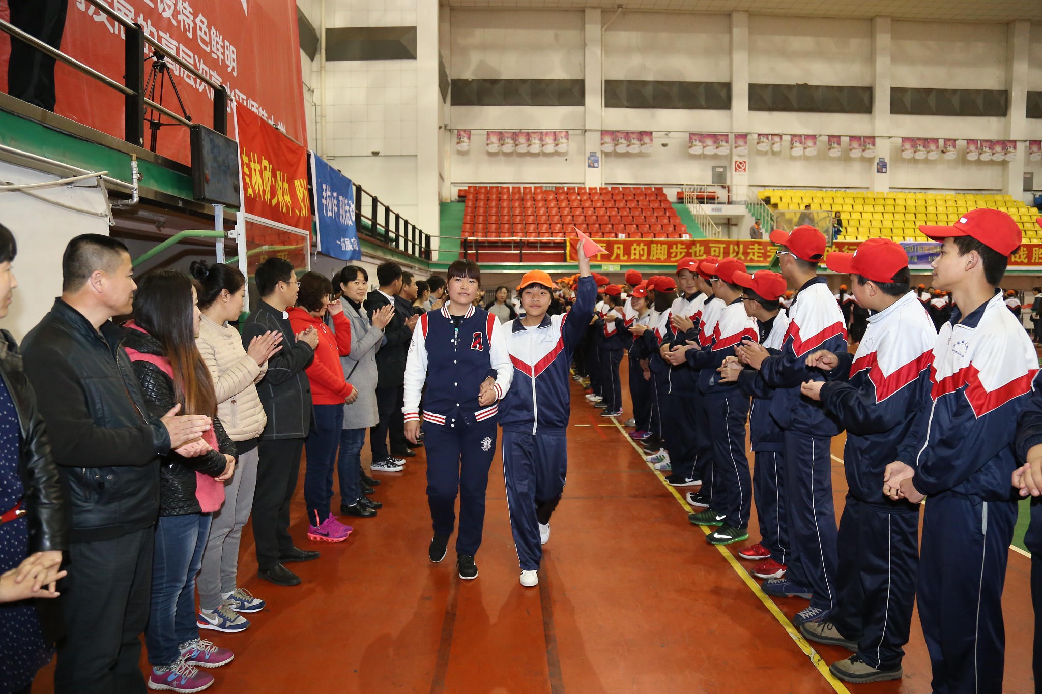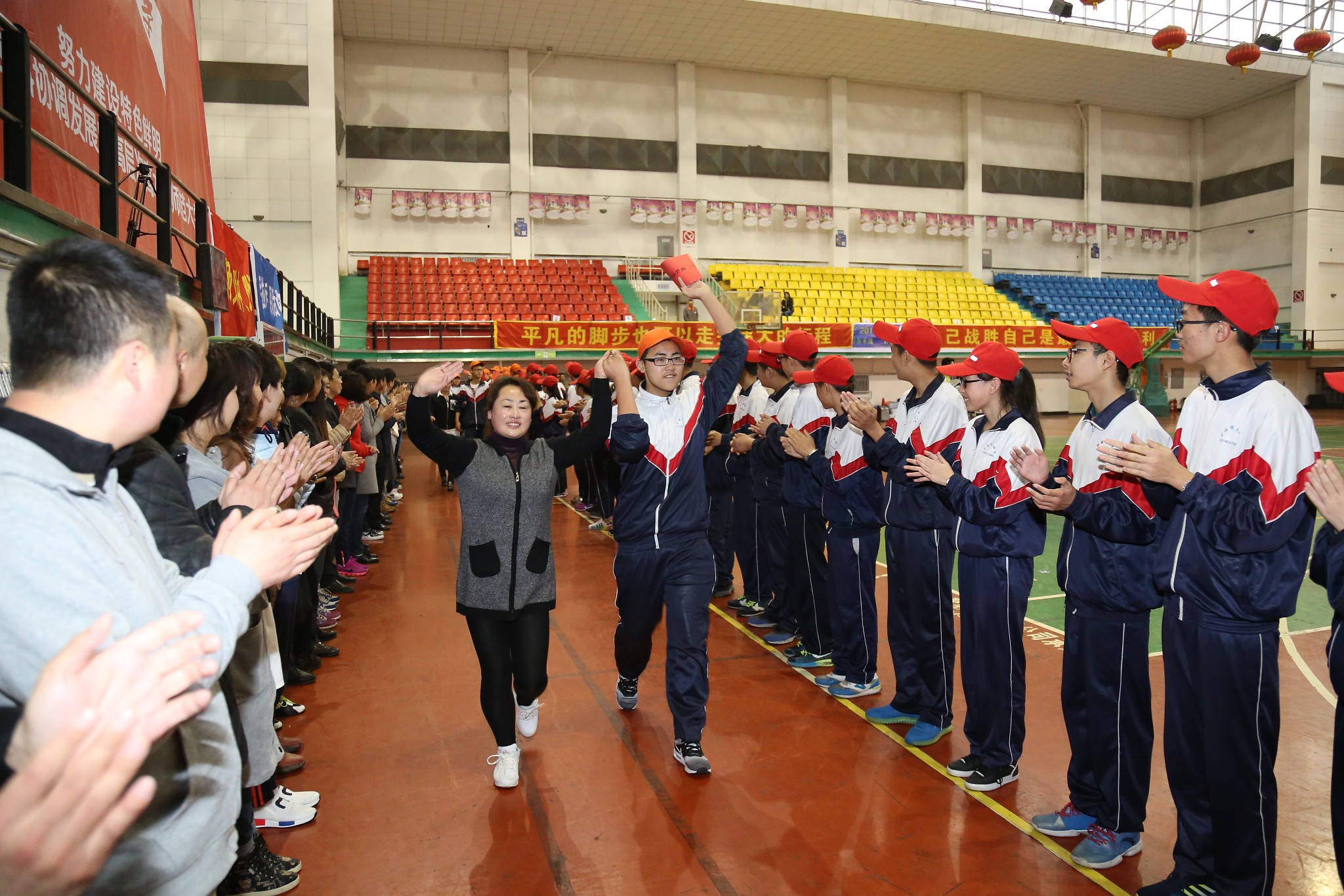 活动项目以“破冰之旅”为引领,学生和家长共同模拟中考成功后,学生手拿梦寐以求的高中入取通知书,和家长一起并肩携手走过“T”台,接受队员的祝贺,感受成功的喜悦。他们一起加油,一起欢呼,相互勉励,再次坚定了决胜中考的信•心。