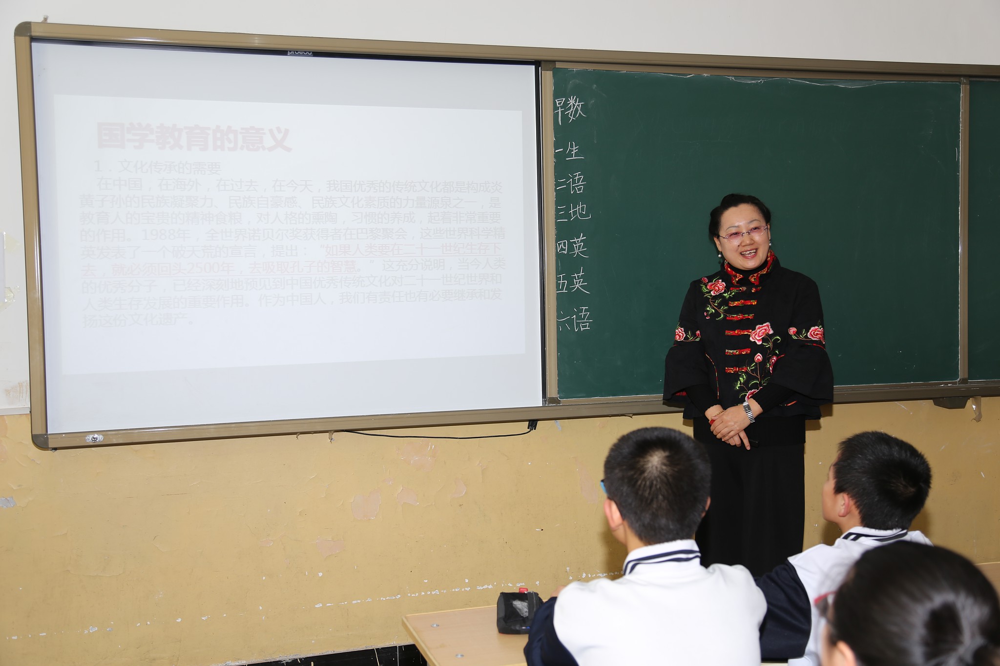 国学是伴随中国传统文化而生长、伴随中国历史而发展,是一门统揽中国学术的概念,开设国学兴趣组意在让学生丰富自己的精神世界,提高文化品位,塑造完美人格。李玉波老师精心的课件准备,应景的服饰搭配,把同学们带入了一个儒雅的国学境界。