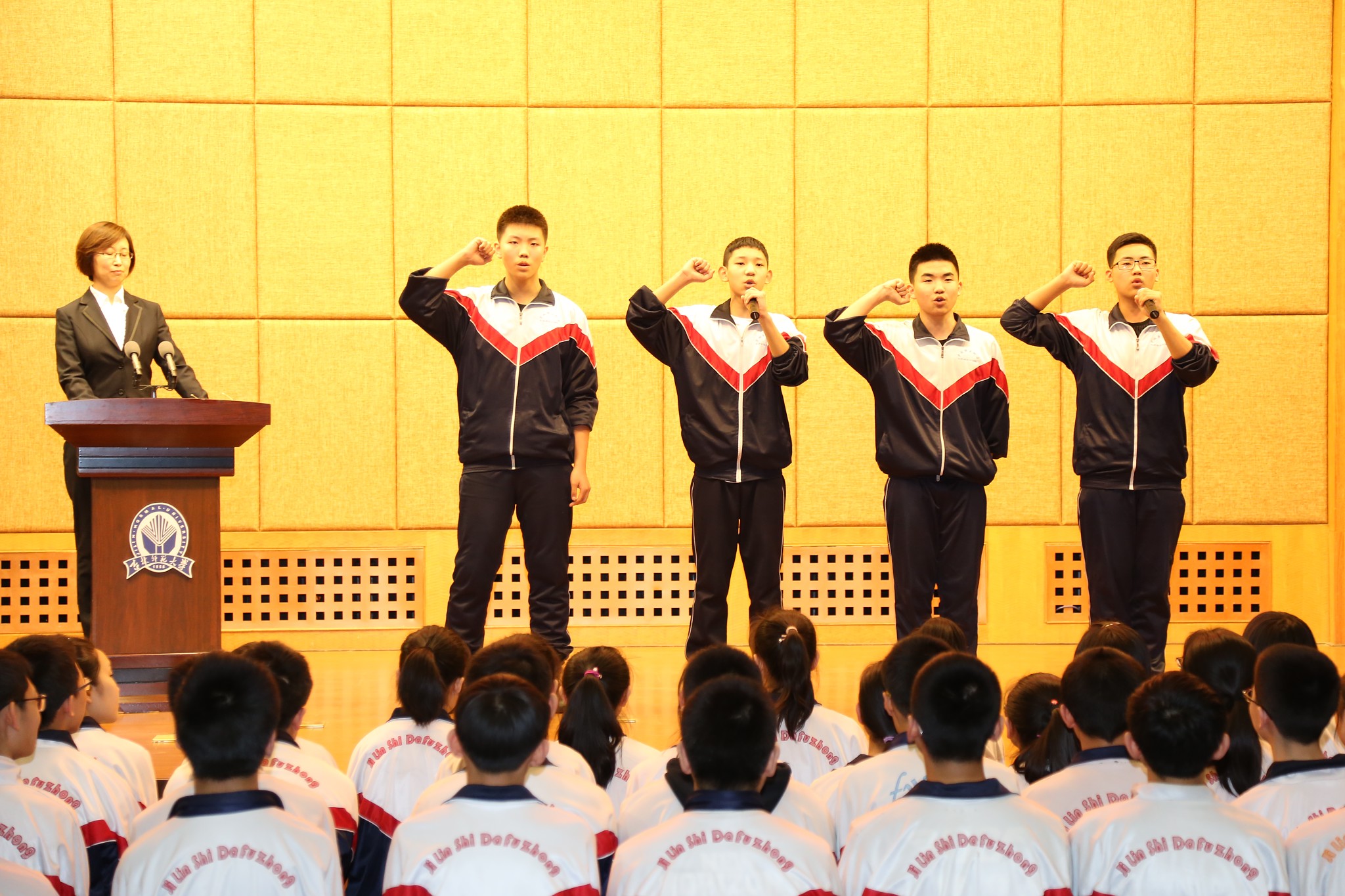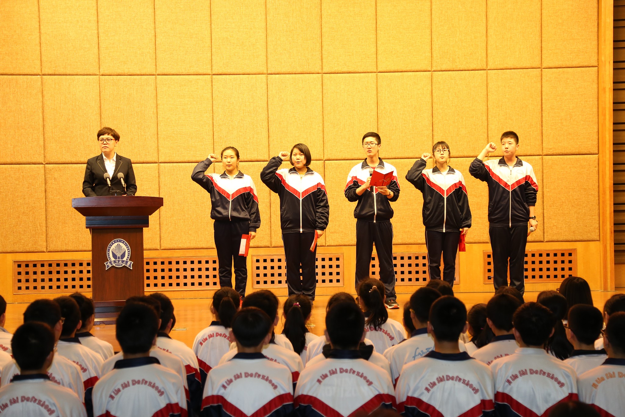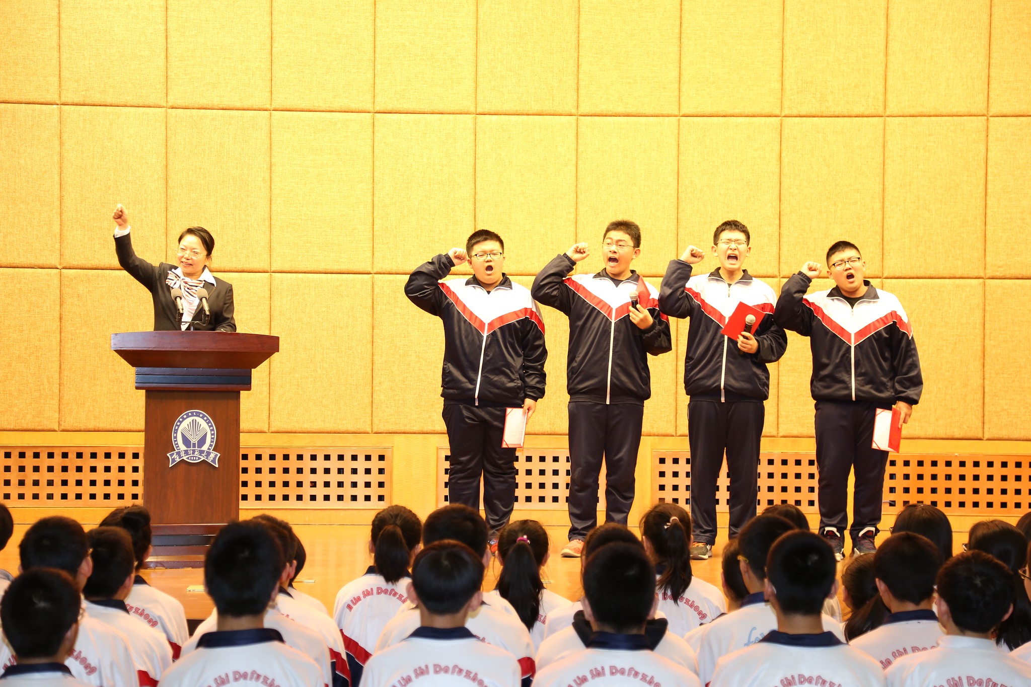 大会第三项,初三各班班主任和学生按照班级顺序依次宣誓。师生们都誓言要在百日后的中考中,用更好的成绩来回报自己、回报家长、回报老师和母校,高举的右拳使他们热血沸腾,铮铮的誓言令他们信心倍增。