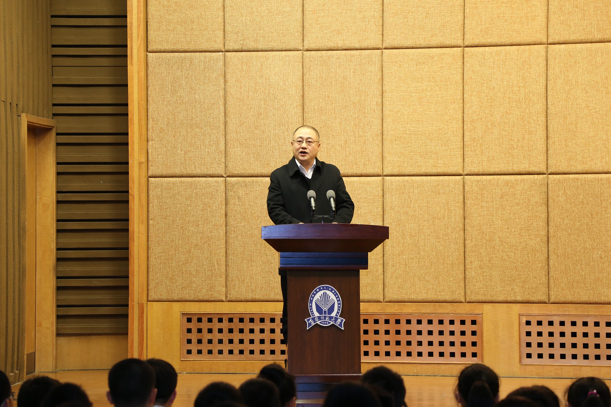 大会第五项,由附中副校长吴成学致辞。他首先代表学校向辛勤工作的全体初三教师表示深深的敬意和衷心的感谢,向奋力拼搏的全体初三同学表示真诚的祝福和美好的祝愿,随后对全体师生作了鼓舞人心的动员,鼓励学生们要立足今天,把握明天,奋战百日,实现理想。