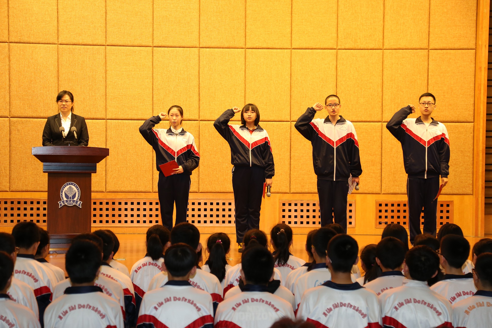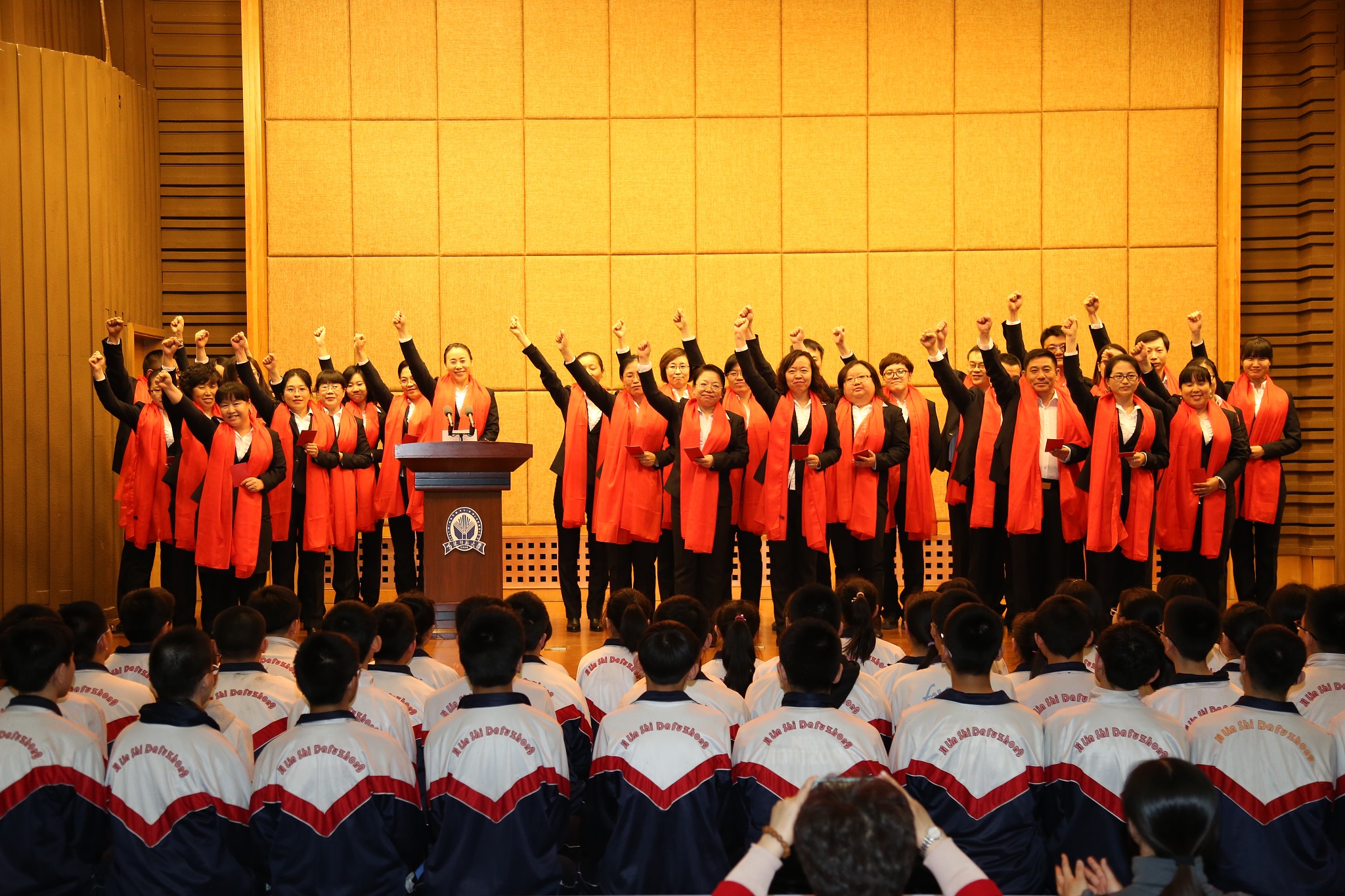 大会第四项,初三全体任课教师共同向学校和学生庄严承诺:要恪守职业道德,精备每一节课、精讲每一个考点,要与全体同学风雨同行,共铸师生与学校的辉煌,续写附中壮丽的诗篇,掷地有声的诺言赢得了全场最热烈的掌声。