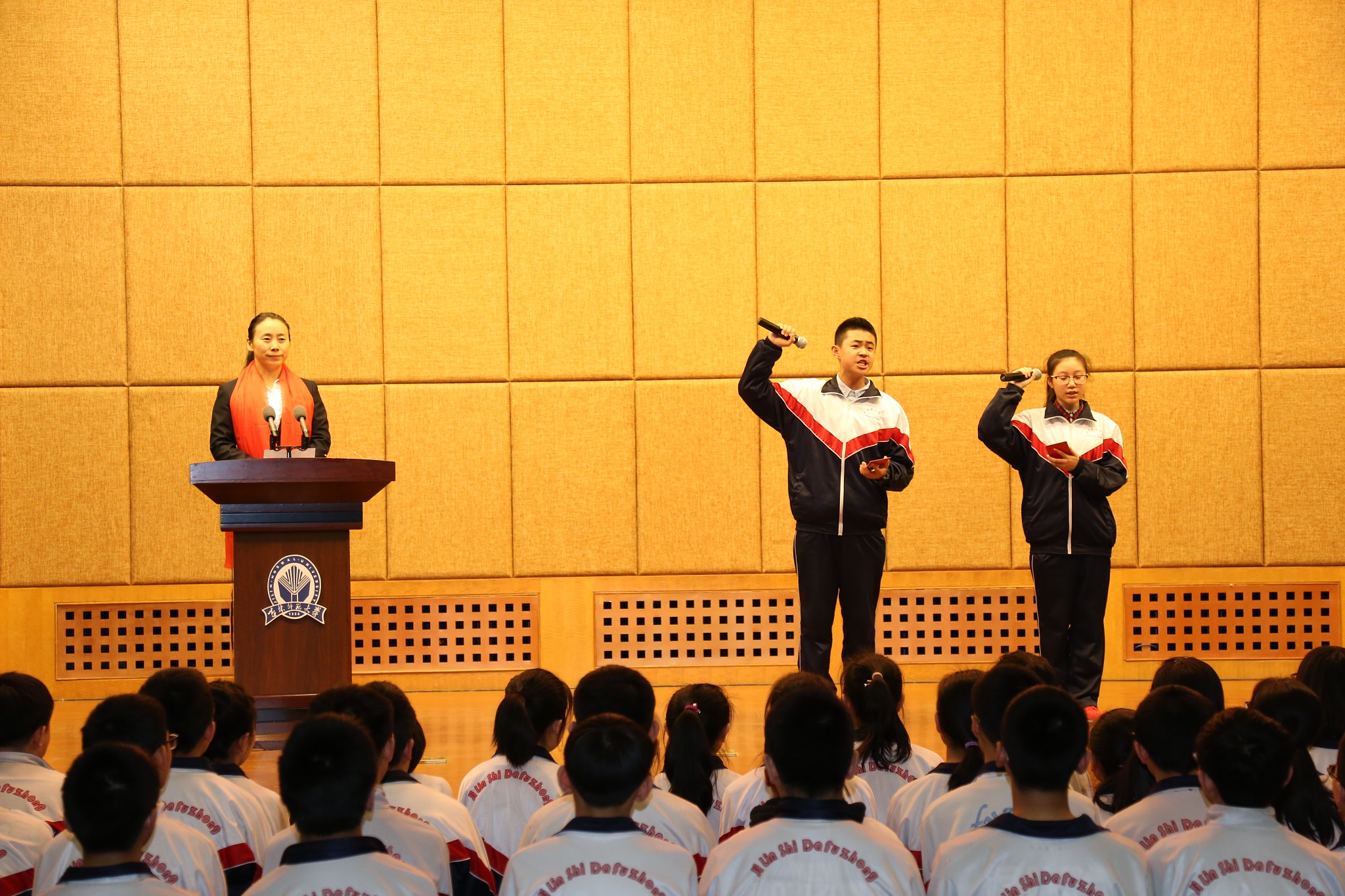 3月18日12:40分,吉林师大附中初三全体师生600余人在bat365平台官网图书馆报告厅奏响了2016中考冲锋的号角,表达他们圆梦中考的信心和决心。附中附小校长李峰、副校长孙阳华、党总支副书记杜文平,附中副校长吴成学、闵红佳出席了大会。教务处主任陈艳杰主持会议。