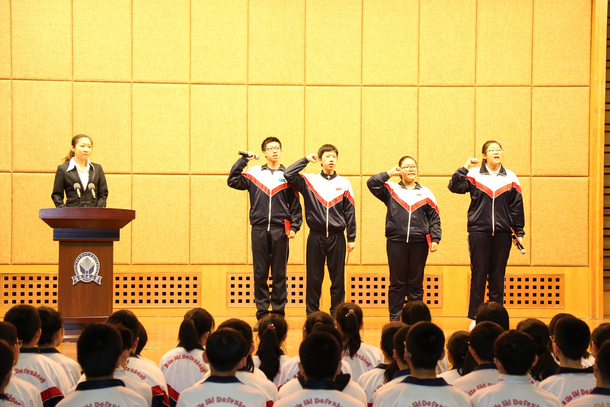 会议共有六项内容。首先,全体师生起立,齐唱国歌。