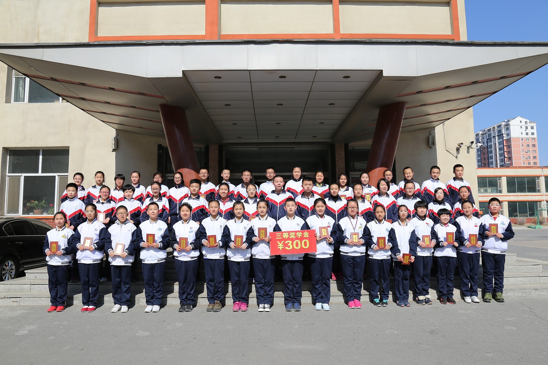 为激励学生的学习积极性,表彰品学兼优的好学生,创造良好的学习氛围,3月23日上午9:30分,吉林师大附中举行2015—2016学年度第一学期奖学金颁发大会。全校七、八、九年级共有85名学生获此殊荣。奖学金颁发仪式由教务处主任陈艳杰主持。