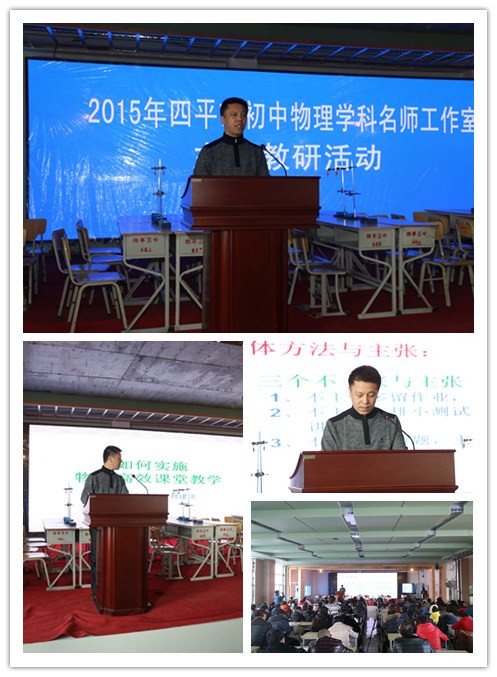 为了进一步深化课堂教学改革,充分发挥优秀教师的引领、示范和辐射作用,加速物理专业的发展及成长,从而提高课堂教学的效率和质量,11月27日,四平市教育学院在四平三中举办了“2015年四平市初中物理学科名师工作室主题教研活动”。吉林师大附中刘建文老师作了“如何实施物理高效课堂教学”专题讲座,许广平老师展示了一节题为《质量》的常规物理课。