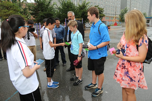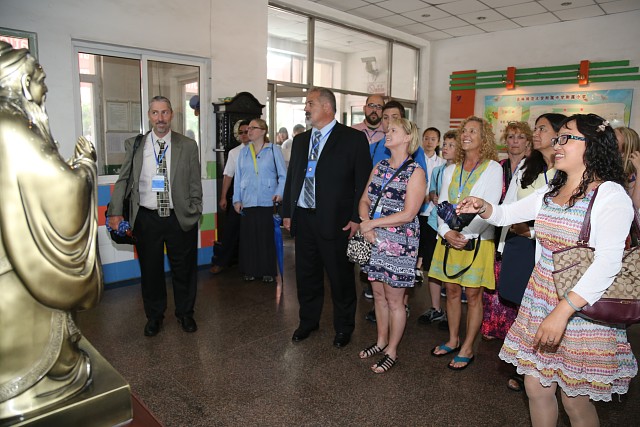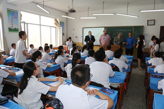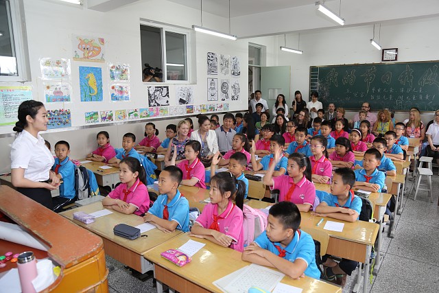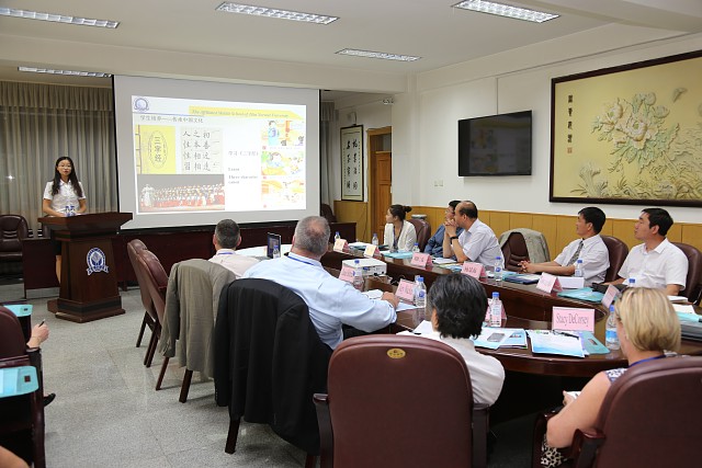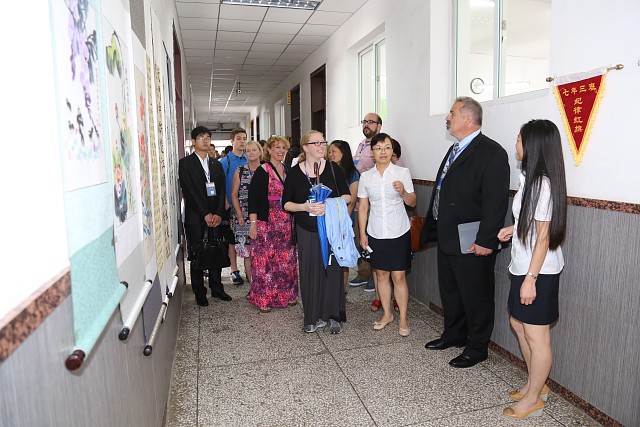 随后,访问团分别参观了bat365初中部和小学部的常规课堂教学以及厅廊文化展示。参观过程中,访问团首先饶有兴致地观摩了小学部教师冯博主讲的一节古诗词讲读课,深切感受到了中国传统文化的魅力;在中学部英语教师的讲解和引领下,访问团分别深入到多个课堂与学生亲切互动,学生回应积极踊跃,现场气氛和谐愉快。访问团对bat365英语教师及学生的英语口语水平给予了充分肯定,并对学校内涵深刻的主题墙、寓教于乐的文化角以及丰富多彩的中国传统文化展示栏表示出了浓厚兴趣。