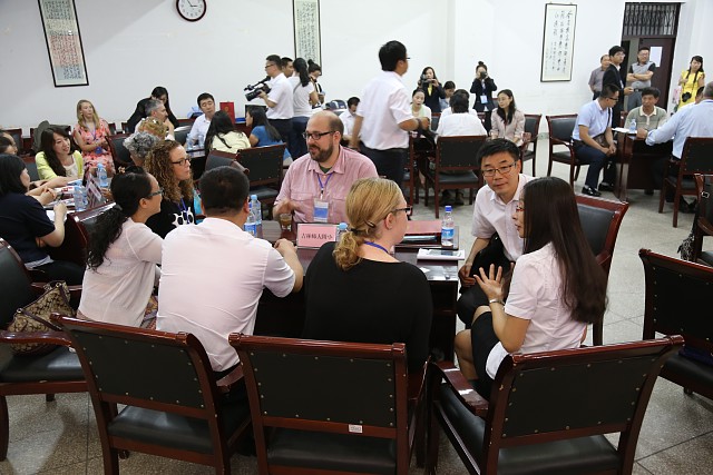 在经过了短暂的茶歇后,中美中小学校长开始进行直接交流与对话,双方根据各自的办学需求及对方的办学特色寻找适当的合作伙伴,并初步达成合作意向。