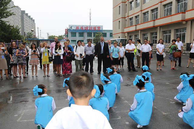 欢迎仪式上,访问团及随行人员共同观看了小学生唱诵《弟子规》表演及军乐队演奏,并给予高度赞赏。