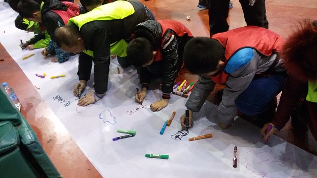 义工、学生、老师、家长分着不同颜色的印有“传承正能量”字样的衣服,被分成若干组,通过“认识陌生人”、“巧传呼啦圈”、“智大力拼图”、“蒙眼过桥”、 “亲子真心话”、“共绘蓝图”等多种活动,得到不同类型的练习与分享,学会沟通、信任、支持与欣赏。活动中,大家都放下平时的身份角色,老师、家长及学生聚集在一起、手拉手,敞开心扉,倾情投入,彼此传递着爱心,收获着感动,整个活动充满了温情与真爱。“亲子真心话”更是将活动推向高潮,很多同学都勇敢地站上舞台真诚地向父母说出自己的心声,表示理解了父母的良苦用心,愿意做个懂得感恩的好孩子。父母们也纷纷表示要多抽出时间陪孩子,尊重孩子的选择,动人的场面让不少师生、家长潸然泪下。