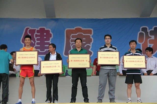 此次运动会bat365共选派32人参加了甲、乙、丙三个组别共33个项目的比赛。由于bat365领导的高度重视和精心组织,参赛教师的刻苦训练和积极备战,加之全体教练员和运动员的奋力拼搏和团结协作,我们在本次运动会上取得了骄人的成绩。吉林师大附中附小获得了本次运动会教工组的第一名,共有15个项目获得个人第一名,三个项目打破赛会纪录,分别是:女甲100米(李明霞)、女乙400米(李小平、夏远波)、女乙跳远(夏远波、刘春燕)。