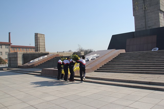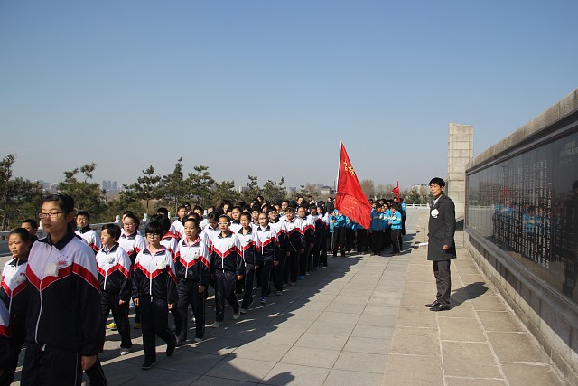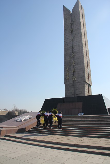 仪式结束后,全体师生进行祭扫和瞻仰活动。看着巍峨的烈士纪念碑,望着两侧石壁上英雄的名字,师生们感慨万千。烈士们走了,但他们的事迹会幻化成永不磨灭的丰碑高高耸立在我们后人的心中。