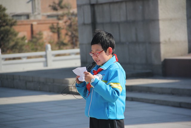 随后,初中团委刘丽娜书记进行了讲话。他叮嘱同学们要时刻铭记历史,不忘昨天,珍惜今天。为了历史不再重演,要立足本职,以实际行动和优异的学业回报社会和家人的关爱,不忘那些曾经为新中国的建立而壮烈牺牲的勇士们,用我们的实际行动告慰他们的英灵!