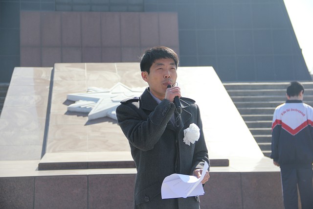 接下来,学生代表王露研和李蕊同学进行了发言,他们代表全体学生作出承诺,我们更应该踏着先烈的足迹,坚持不懈地努力学习,为祖国和家乡的繁荣作出自己最大的贡献。