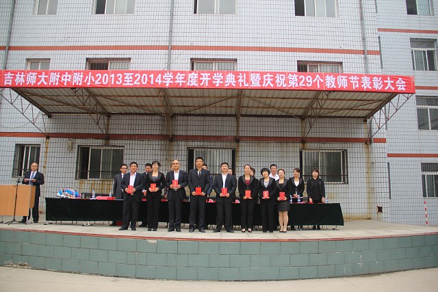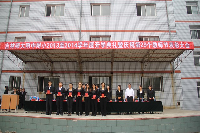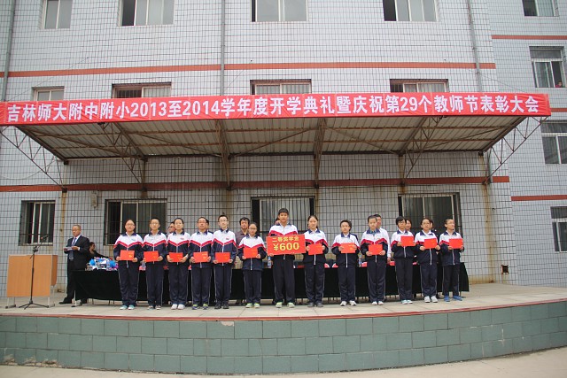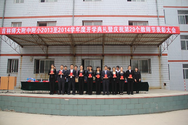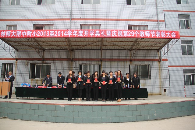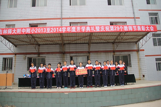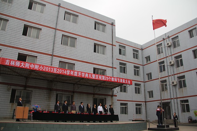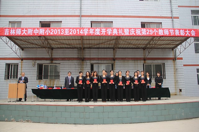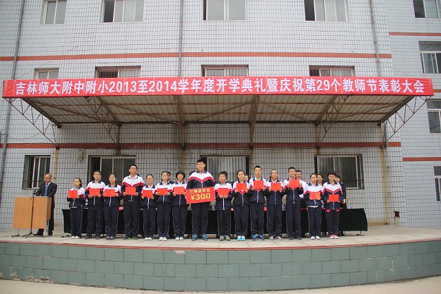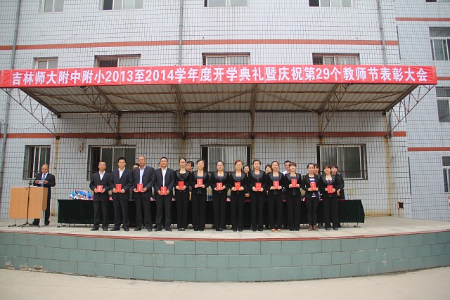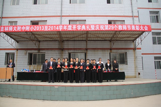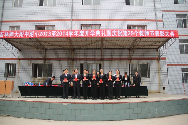 9月10日上午8点,bat365在操场上隆重举行2013—2014学年度开学典礼暨教师节表彰大会。大会由吉林师大附中副校长吴成学主持,学校领导、全体教职员工及全体学生参加了大会。