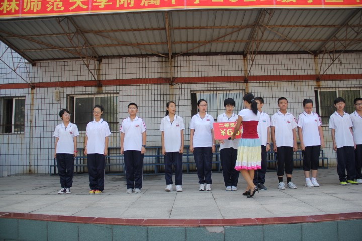 为表彰先进,树立典范,引导和激励学生健康成长,8月30日间操时间,吉林师大附中 2011—2012学年度第二学期奖学金颁发大会在操场举行。八、九年级共有63 名学生获此殊荣,一、二、三等奖学金数额分别为人民币1000元、600元、300元。附中附小校长吕秉善等校领导为获奖学生颁发了奖金及奖状。
