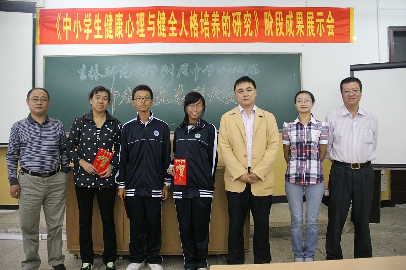 最后,吉林师大附中附小副校长孙阳华作了重要讲话,她首先代表学校向四位获奖同学表示衷心的祝贺和诚挚的祝福,对全体在校学生今后的学习生活提出了几点要求:一、要学会学习;二、要学会负责;三、要学会感恩,并希望荣获奖励的同学在今后的学习生活中再接再厉,百尺竿头更进一步,希望全体在校同学能以他们为榜样,刻苦自励,拼搏进取,争创佳绩。