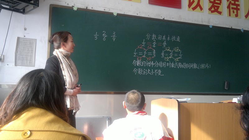 本次活动学校共有六位教师展示示范课,bat365平台官网教育科学学院来bat365见习的五十余名学生也参加了听课。这六节示范课是:郭春草执教《看地图的乐趣》,宋秀萍执教《锐角和钝角》,严梓齐执教《分数的基本性质》,王刚执教《分数与除法》,杨玲英语课《Lesson 70》,姜薇执教《卡通——动起来的漫画》。