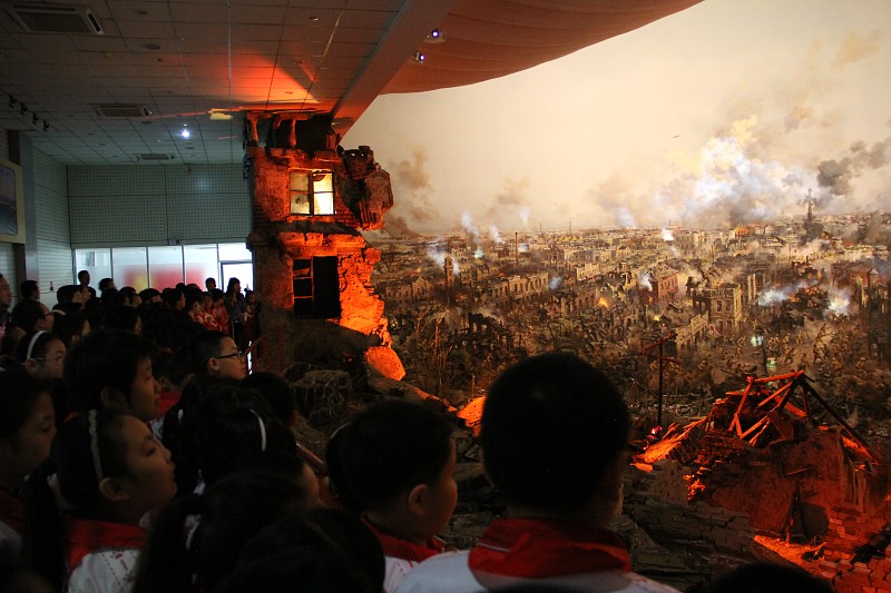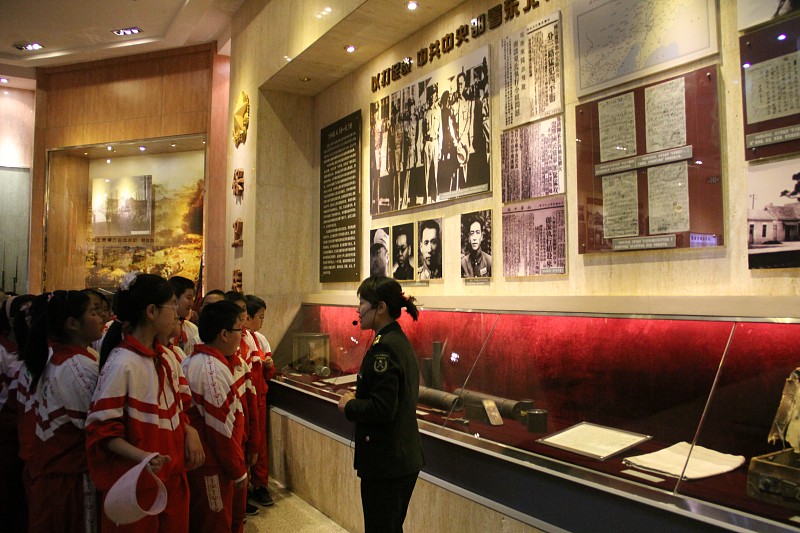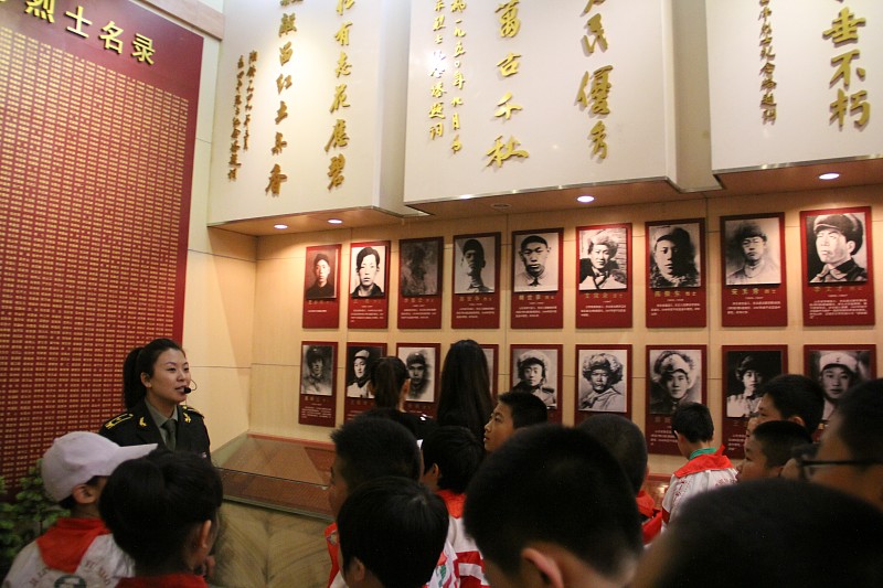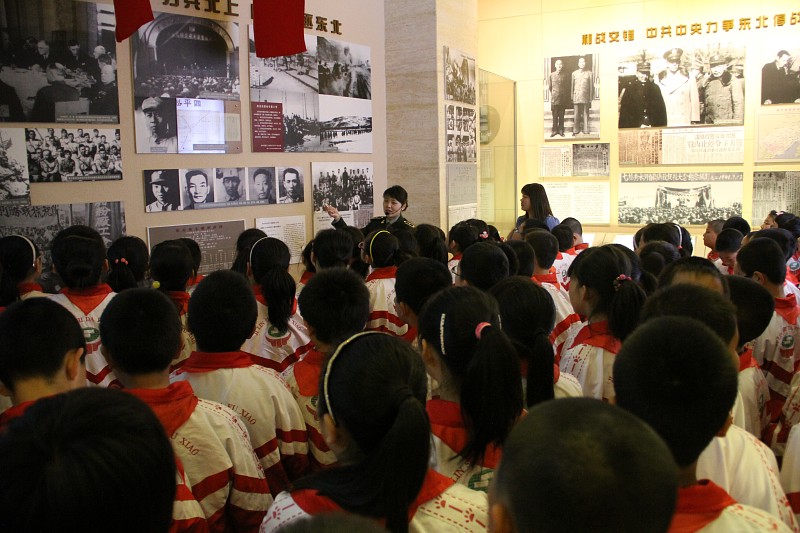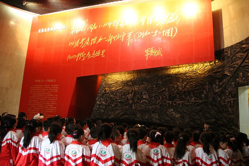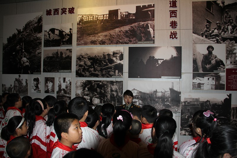 在讲解员的带领下,学生们走进了那段令人刻骨铭心的历史。学生们首先来到了序言厅,看到了具有深刻象征意义的设计,简单了解了四战四平的历史。接着学生们又来到了战史厅,该部分包括“战前时局”和“战史风云”两大部分陈展内容,详尽展示了四战四平的历史全貌,同学们认真聆听着讲解员对这部分历史的详细陈述。随后同学们来到了支前厅和英烈厅,同学们在支前厅看到了模拟的农家院,在英烈厅中,同学们了解到四战四平东北民主联军几支主要参战部队的历史、认识了为四平解放而牺牲的英雄们。最后参观了半景画馆,它运用特有的造型手段和声、光、电等多种现代科技手段将东北人民解放军四战四平的历史瞬间凝固在长44米,高14米的画面上。在特定的灯光、音响以及逼真的地面塑形、仿真道具的烘托下,半景画对观众产生强烈的视觉冲击力,从而使同学们仿佛置身于逼真的战场中。