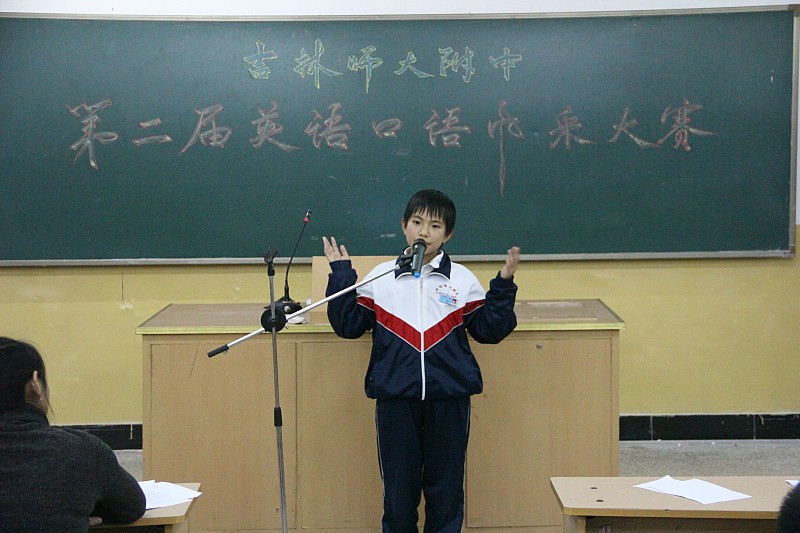 为了丰富学生的课余生活,营造更好的英语学习氛围,进一步提高学生的口语表达能力,11月17日下午,吉林师大附中“第二届英语口语风采大赛”在阶梯教室成功举办。吉林师大附中附小副校长孙阳华、吉林师大附中副校长吴成学、教务处主任陈艳杰出席了比赛,英语组邓伟达、王燕等教师担任评委,全体学生通过电视观看了比赛。