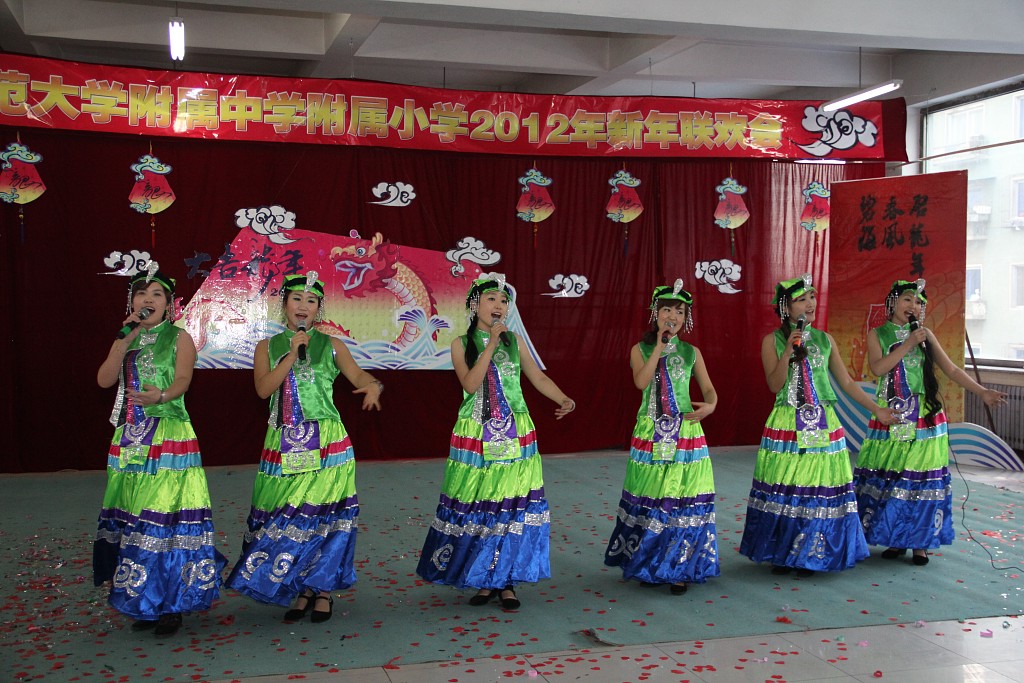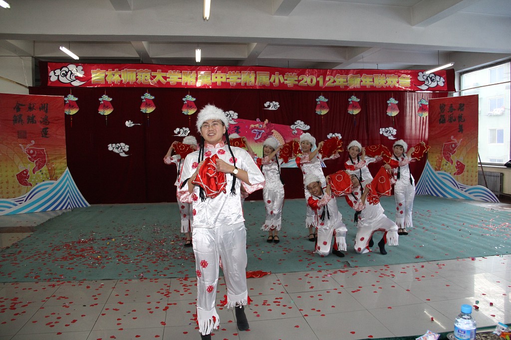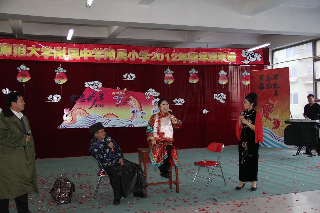 联欢会在欢快的舞蹈《蒸蒸日上》中拉开帷幕,整台联欢会节目丰富多彩,校长吕秉善和姜焕老师的器乐合奏《神话》,把大家带到了一个梦幻般的爱情世界;附中附小新老教师共同演出的健身秧歌淋漓尽致地展现了bat365教师较高综合素质和艺术表现力;新奇、火辣、幽默的《剪纸姑娘》引爆全场;小品《新打工奇遇》,以其搞笑的语言、夸张的动作令全场观众捧腹大笑;张波书记的即兴演唱《敢问路在何方》将联欢会推向一个新的高潮。晚会在歌舞《走向复兴》中落下帷幕,预示着师大附中附小在2012年的教育教学工作中将会更上一个台阶。