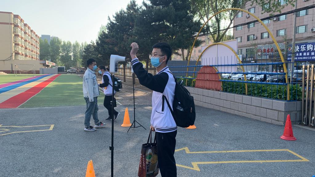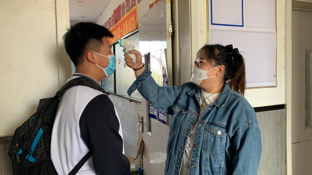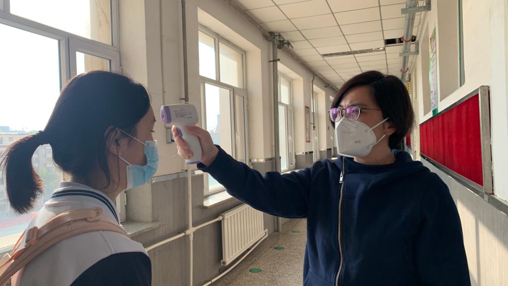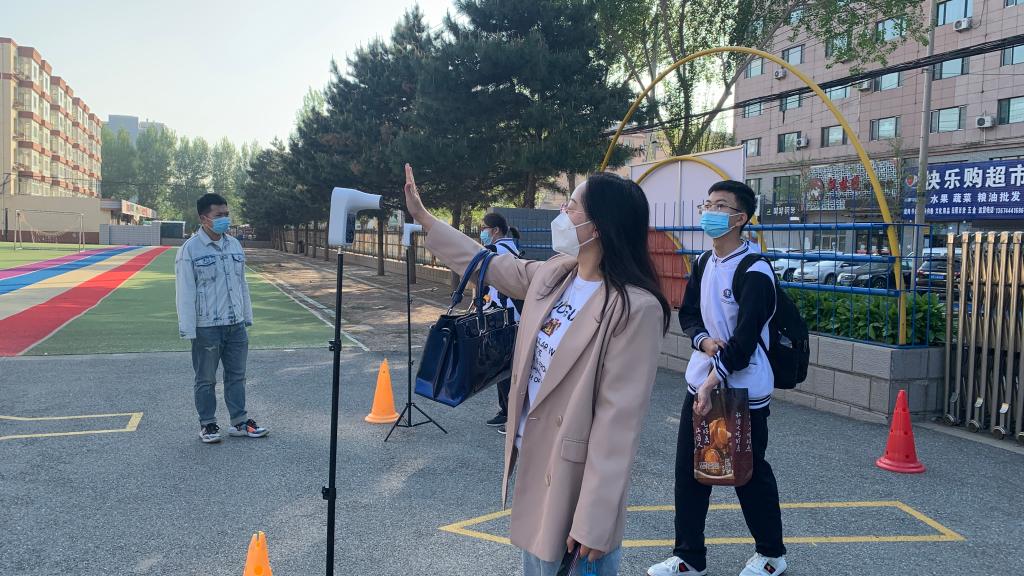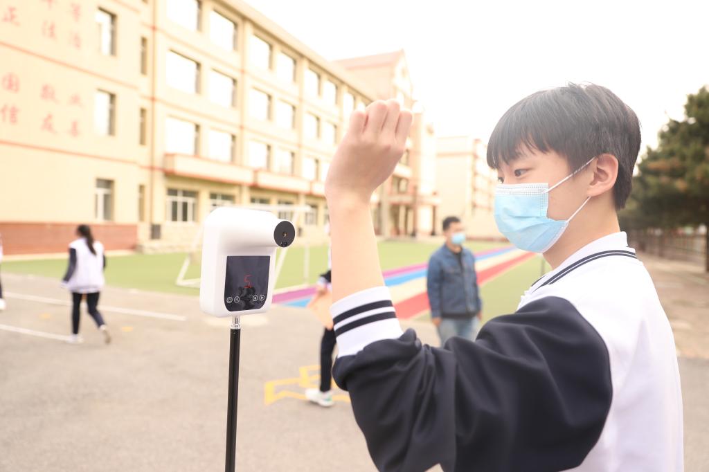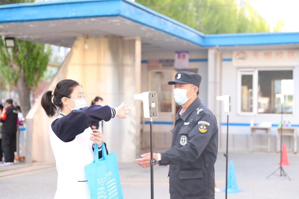 5月13日早6:40,暖阳唤醒了沉寂已久的校园。全体行政、初三班主任、任课老师与保安、生活老师等早已准备就绪,迎接返校复课的初三学子。孩子们纷纷通过校门前的分流通道进入校门,在自动测温仪前完成晨检的第一项。顺着线路标识进入楼门,通过红外线自动测温仪完成晨检的第二项。进入班级前,班主任对其进行额温检测完成晨检的最后一项。在层层监测中,掌握每一位学生的身体健康情况,确保所有学生的健康。