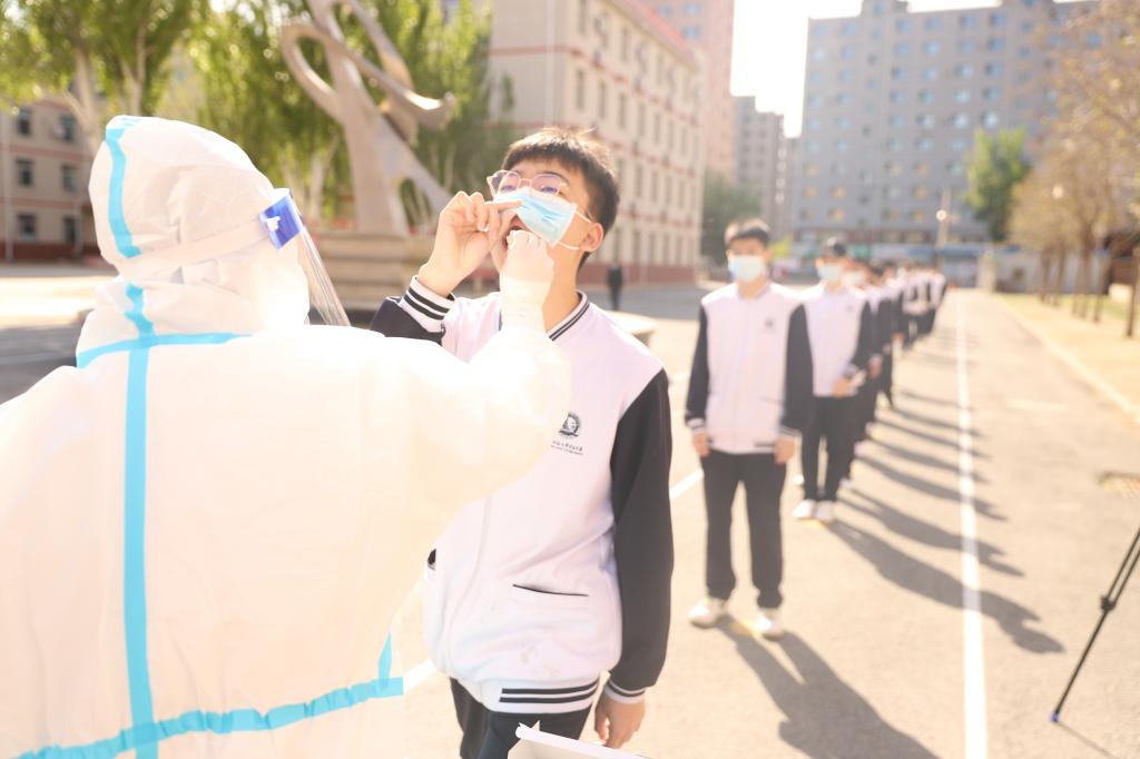 5月12日,全体初三师生按照上级教育行政主管部门的安排在校内进行核酸检测和突发事件演练,班主任按照学校要求,收集学生签订打印的承诺书、健康检测卡、共同居住人行程码、两次核酸检测证明,确保顺利开学。