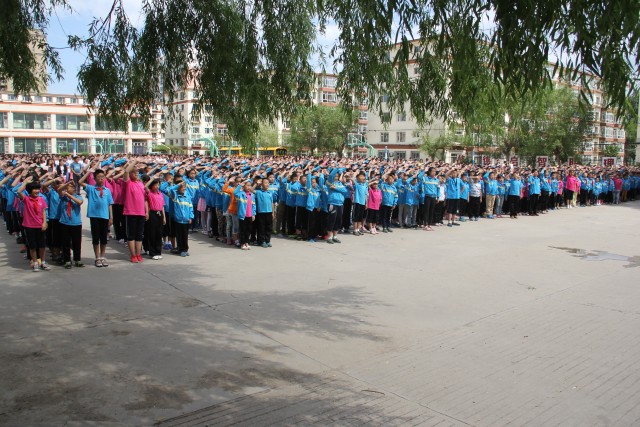 我宣布:吉林师大附中附小本学期第八次升国旗仪式现在开始!