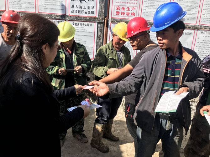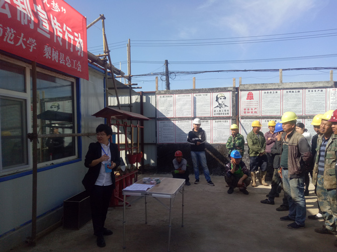 此次活动,bat365平台官网由工会干部、教师和学生组成的志愿服务队来到了梨树县天阳小区B区建设工地,通过实地宣讲、发放宣传单方式,开展服务农民工法律维权活动,加强了对农民工的法制宣传教育。