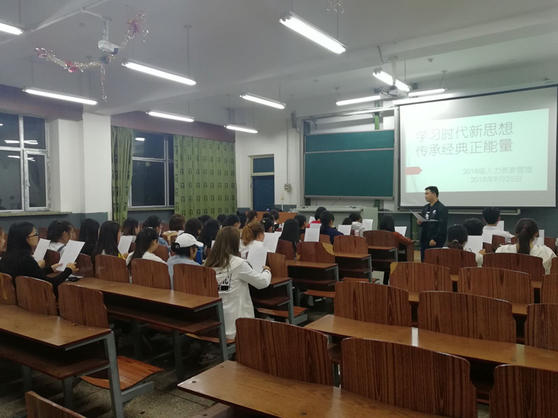 为鼓励当代大学生学习贯彻习近平新时代中国特色社会主义思想和党的十九大精神,进一步完善知识结构、夯实文化底蕴,传承中华美德,强化学院国学教育开展常态化,2018年9月3日至7日,管理学院236名新生在分专业、分批次开展习近平新时代中国特色社会主义思想及经典国学读本学习教育活动。