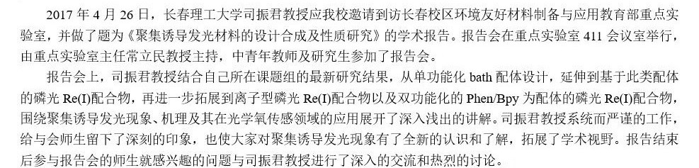 长春理工大学司振君教授到访环境友好材料制备与应用教育部重点实验室