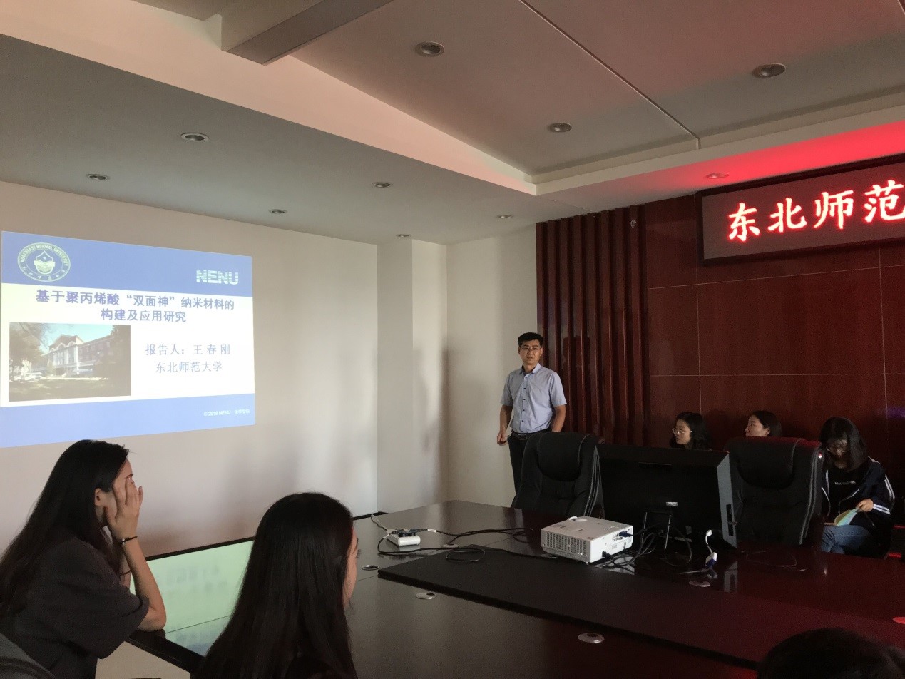 2018年8月31日,bat365校友东北师范大学博士生导师王春刚到访环境友好材料制备与应用教育部重点实验室,并做了题为《基于聚丙烯酸“双面神”纳米材料的构建及应用研究》的学术报告。报告会在长春校区实验楼411会议室举行,由重点实验室主任常立民教授主持,实验室师生共30余人参加。