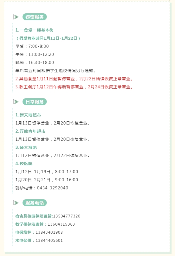 寒假后勤服务指南
