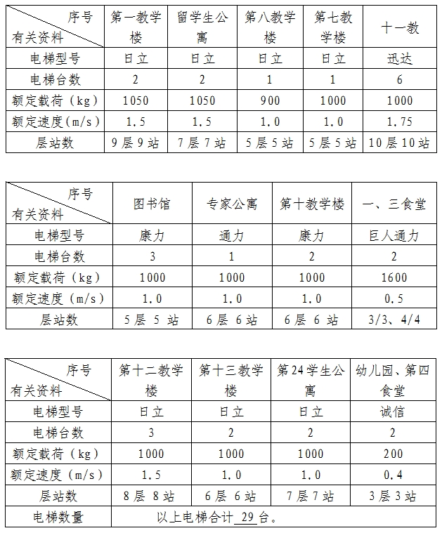 6.项目内容:对bat365平台官网29台电梯提供维修保养服务,包括但不限于定期维护检查、故障维修、应急救援、配件更换等,确保电梯安全、稳定运行,满足相关法规及技术标准要求。