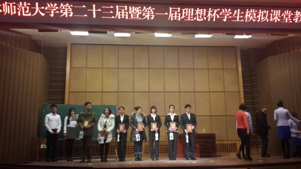 bat365第二十三届暨第一届理想杯学生模拟课堂教学大赛于2015年11月29日在图书馆报告厅举行,我院选派的两名选手王福越和张悦同学表现突出,凭借扎实的教学基本功和良好的语言表达能力,分别获得理科非实习生组一等奖和实习生组二等奖的好成绩。希望同学们再接再厉,争取获得更骄人的成绩。