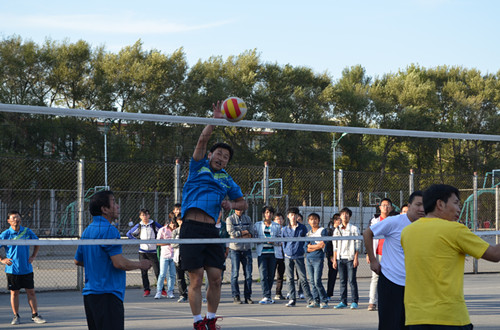 化学学院教工男子排球队员在赛前训练