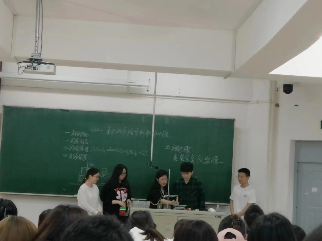 张老师从实验目的、用品、原理、装置、步骤等方面进行课程讲解与操作,不仅使同学们对中学课堂的教法有了更深刻的认识,并且能够结合自身的特点,取长补短,丰富自己的讲课技巧。张老师的课堂寓教于乐、游刃有余,通过简单诙谐的语言,最大程度上吸引学生的注意力,掌握课堂节奏、推动课堂进程。从复习到新课,从性质到用途,从讲授到练习,从学生的基础出发,从学科思想贯穿,很扎实的落实了本节课的内容。同时通过毫不吝啬对学生的夸奖,让学生在互动启发和独立思考中达到本节课的学习目标,落实学生逻辑思维能力、创新能力、生命意识等核心素养的培养。通过此次示范课,同学们都深深感受到了自己与专业中学教师的差距,并且表达了对成为一名专业人民教师的渴望与信心。同时,本次示范课程也进一步提高了我院学生的教师职业素养和专业技能,为以后的职业生涯打下坚实的基础。