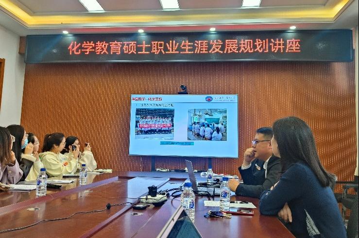 为了促进学生更好地了解学校教育与教学工作的特点与任务,进一步提高专业技能和培养职业情感,2024年3月28日,化学学院邀请四平市第一高级中学教学主任张洪刚老师为正处于教育见习中的2023级学科教学(化学)专业的研究生进行主题为《务实创新发展共赢》的职业生涯发展规划讲座。化学学院赵丽娜院长主持本次讲座。