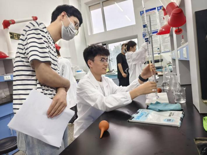 复赛环节于6月19日晚18:00在4320分析实验室火热开展。赵丽娜院长、刘玉村副院长莅临现场为同学们加油鼓劲。本次复赛以实验操作为核心考核形式,由王晓彤、孙明辉、商孟香、夏春秋、王国栋五位教师组成的评委组全程参与,从实验设计的科学性、操作流程的规范性到数据记录的准确性等维度进行细致评判。比赛现场,参赛选手们神情专注,目光紧盯着实验台面——移液管的精准取液、滴定管的匀速滴加,每一个动作都严格遵循实验规程。选手们以扎实的实验功底与严谨的科学态度,将课堂所学的实验技能转化为赛场的从容表现,充分展现了应用化学专业学生“做中学、学中精”的实践素养。经过激烈的实验操作和精准的数据分析,评委们依据实验设计、操作规范、结果准确性等多个方面的综合表现,最终评选出了本次大赛的获奖选手。最终李鑫一、曲鹏旭、郭红含三位同学获得特等奖;李一帆、常越、郭馨月获得一等奖;张谦益、张源顺、张程锎获得二等奖。