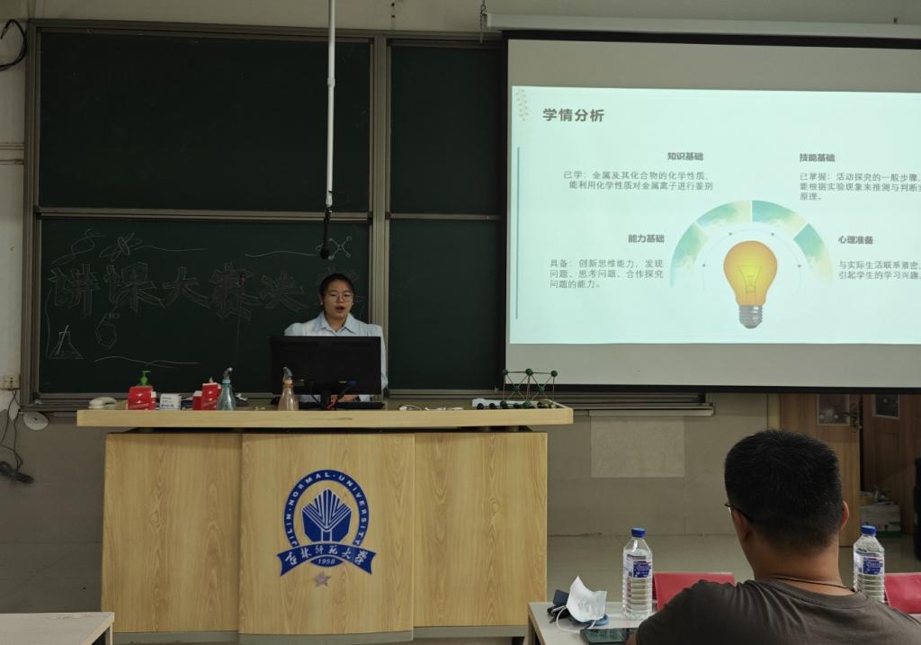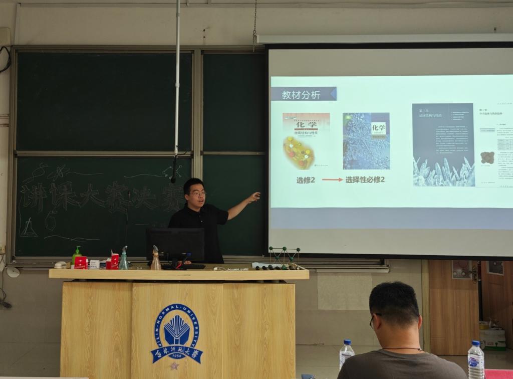 决赛当天,选手们根据自己决定的教学题目进行5-10分钟的讲解。他们展示出了自己扎实的化学知识,用深入浅出的语言,将复杂的化学概念和原理生动形象地传达给学生。他们的讲解不仅内容丰富,而且结构清晰,给观众留下了深刻的印象。赛后,闫丽老师还对选手们进行了一对一的专业指导,帮助他们改正不足,精益求精。激烈角逐过后,评委老师们进行评分,最终确定了获奖选手。