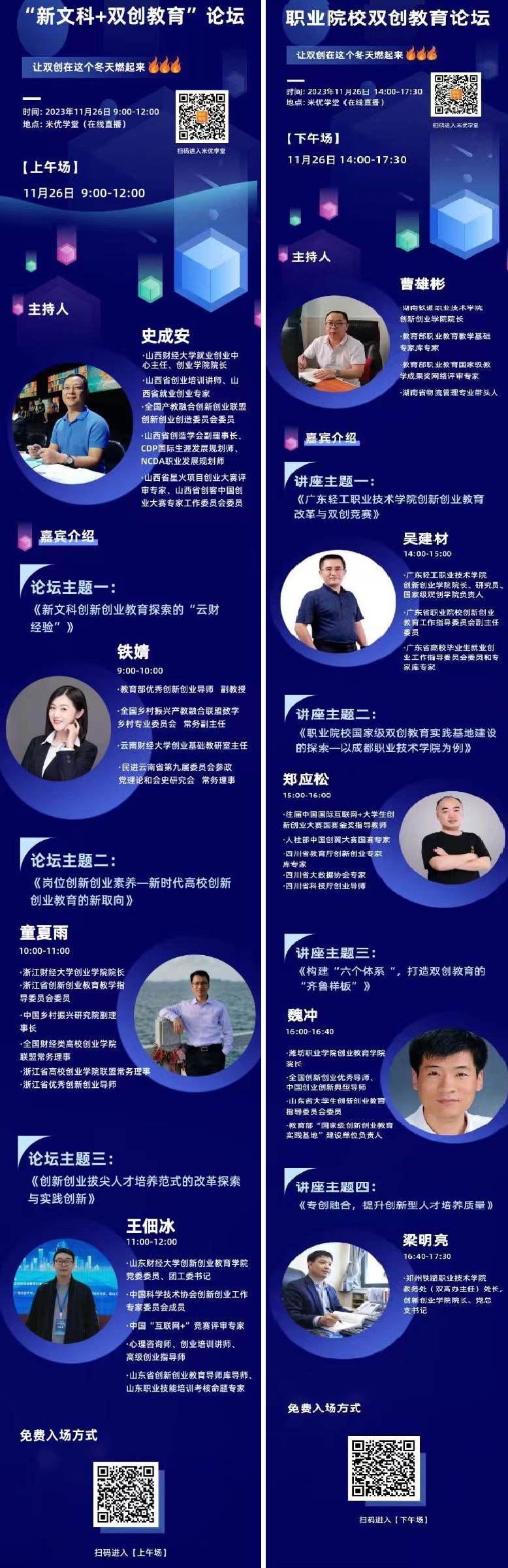 2023年度“双创学习节”教师专场安排及系列讲座海报