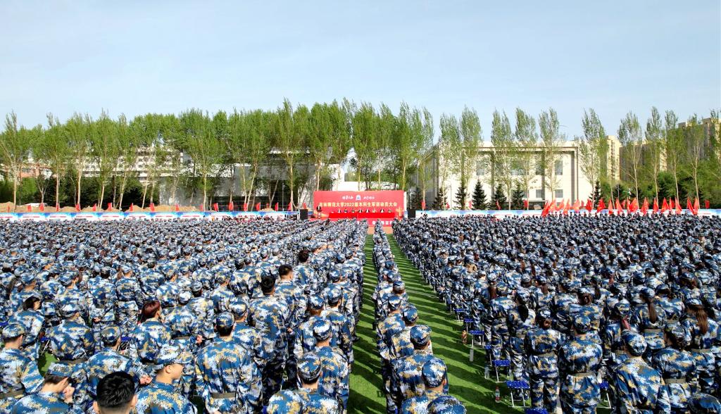 5月6日,学校在运动场召开2022级本科生军训动员大会。党委书记王喜库,党委副书记陈煜平,铁西区委常委、人民武装部政委张中胜,驻平某部队副旅长王勇出席大会。学校相关部门负责人,各学院副书记、2022级本科生辅导员,全体教官及2022级本科生参加大会。