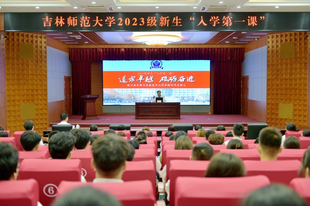 8月29日,党委书记王喜库以《追求卓越,砥砺奋进,努力成为堪当民族复兴大任的新时代吉师人》为题为2023级新生讲授“开学第一课”。相关部门负责人,2023级新生代表聆听报告。