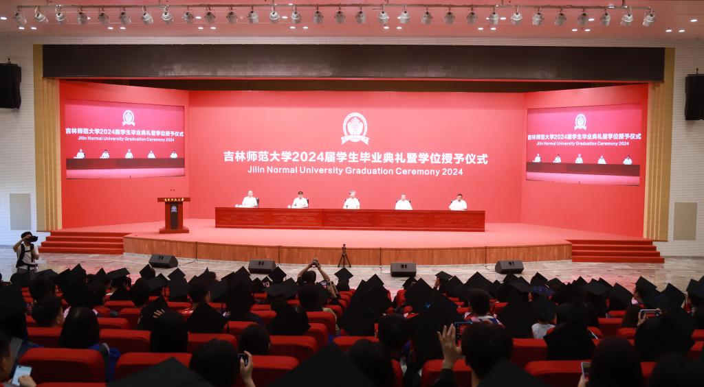 感恩奋进砺青春,挺膺担当向未来。6月26日,学校在实习实训中心千人报告厅举行2024届学生毕业典礼暨学位授予仪式。本次毕业典礼采取线上线下相结合的方式进行。党委书记王喜库,校长杨小天,党委副书记韩金玉,党委常委、副校长左今明、邢宇出席毕业典礼。各相关部门负责人,各学院书记、院长、副书记,任课教师、毕业年级辅导员、宿舍管理员、安保人员、食堂师傅、维修工人、图书馆员、环卫工人、医生、护士和毕业生代表参加现场典礼,广大师生、校友通过直播平台参加“云典礼”。韩金玉主持毕业典礼。