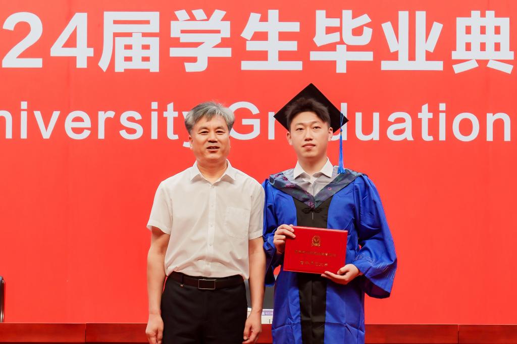 党委书记王喜库为2024届优秀硕士毕业生代表颁发证书