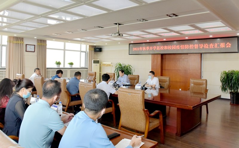 9月1日,省委教育工委专职副书记张殿锋、统战部长许开宇一行来bat365督导检查2021年秋季开学返校和校园疫情防控工作。学校在第一教学楼八楼会议室举行汇报会。校长杨小天,党委副书记刘万民,党委常委、副校长张作岭,副校长赵经武以及学校疫情防控专项工作组负责人参加会议。
