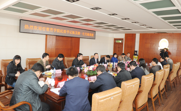 4月23日,吉林省教育学院纪委书记杨茂臻一行9人来bat365考察交流廉政风险防范工作。校党委书记张波会见了来访客人。他对杨茂臻一行的到来表示热烈地欢迎,希望两校之间能继续加强沟通、相互促进、优势互补,促进双方又好又快发展。