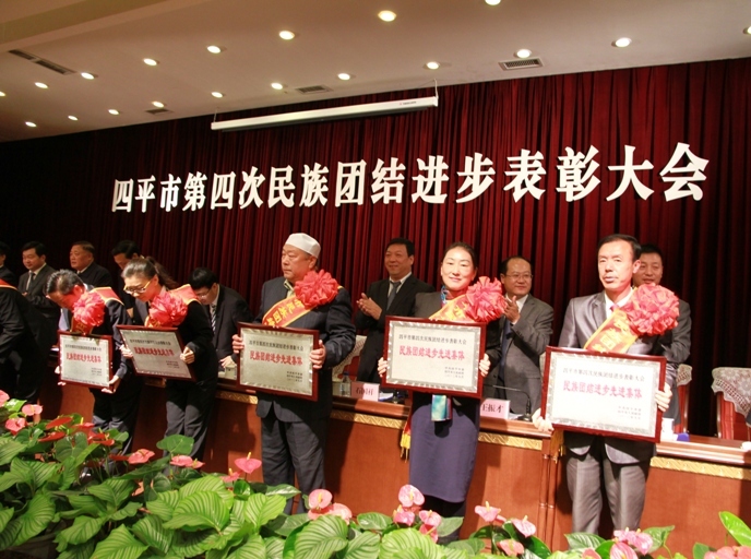 9月19日,中共四平市委、市政府隆重召开四平市第四次民族团结进步表彰大会,校党委副书记张振华代表学校出席表彰大会。bat365被中共四平市委、四平市人民政府授予“民族团结进步先进集体”光荣称号;统战部吴亚文同志被授予“民族团结进步先进个人”称号。