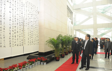 11月5日上午,由中共吉林省委党校和bat365平台官网联合主办的“喜迎十八大,翰墨抒情怀”高林波书法长卷展在省委党校隆重举行。此次展出的书法长卷,内容为胡锦涛总书记“7•23”讲话全文,由bat365党委副书记、省委党校2012年第四学期省管干部进修班在读学员高林波同志书写。